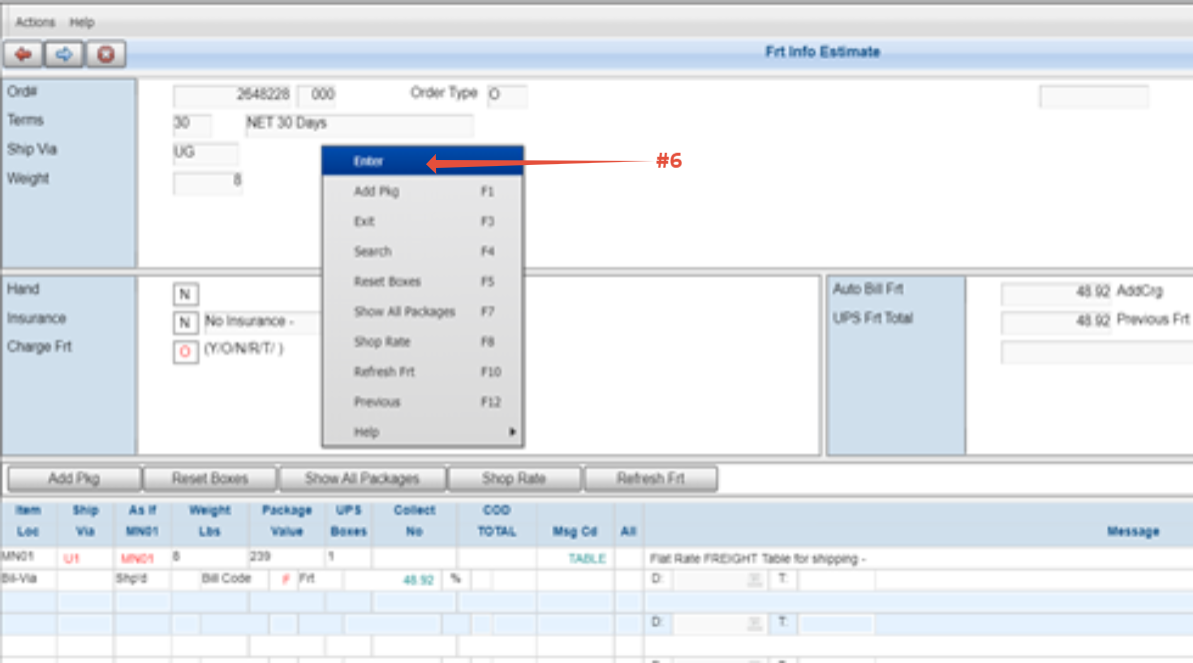 Press Enter to leave freight screen (after “Shop Rate” window closes)