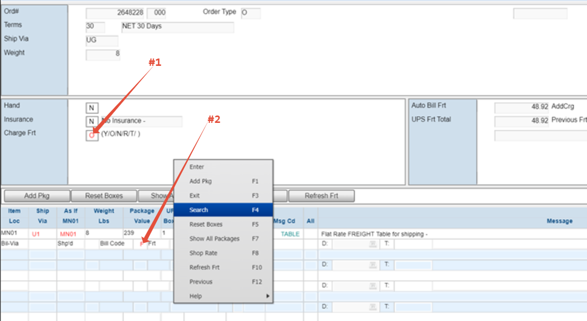 - Update the “Bill Code” field to "C" (Cost Freight)