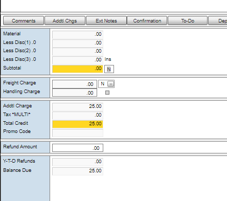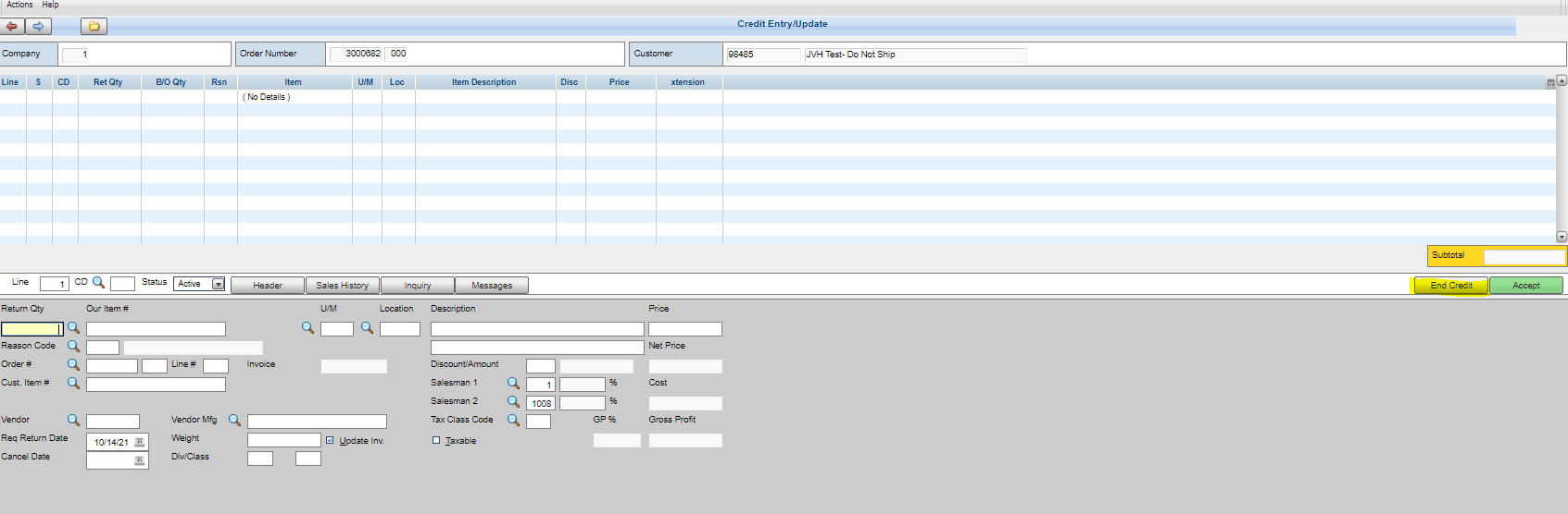 2 | Body of the order is to be left blank, no line items will be entered; Select End Credit. |